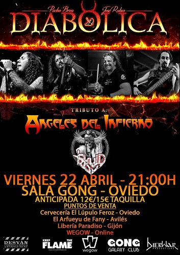 Diabolica, banda de Pacho Brea (Ankhara) y José Rubio (Evil Hunter, Nova Era) que rinde homenaje a Ángeles del Infierno visitará Oviedo el próximo mes de abril. La cita será en la Sala Gong el viernes 22 acompañados por Skuld.
