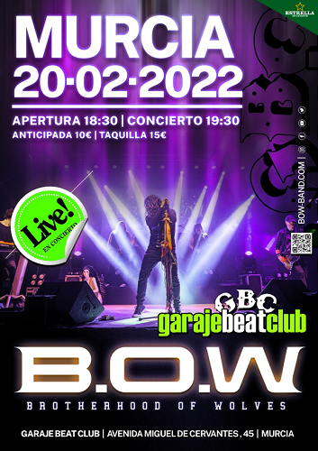 Como nos alegramos del retorno a la actividad del murciano Garaje Beat Club. El próximo 20 de febrero cita con los alicantinos B.O.W. como punto de inicio de una larga lista de eventos con Firewind, Arenia, Saratoga, Nervosa, Burning Witches, Nocturnia, Reylobo, Redención, Brutal Thin, Mind Driller o AstralValley entre otros protagonistas.