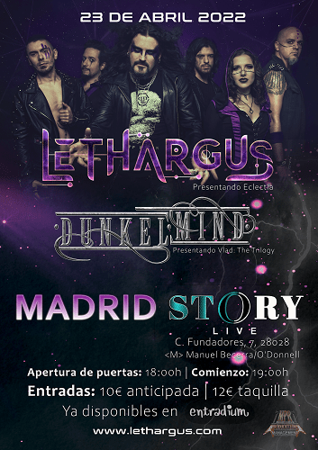 La formación progresiva Lethargus pone fecha a la presentación en Madrid de su nuevo disco «Eclectia«. La cita será el 23 de abril acompañados por los sinfónicos Dunkelmind. Entradas disponibles a través del siguiente enlace a Entradium.