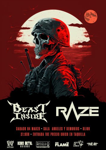 Los thrashers astures Beast Inside retoman los escenarios tras un breve parón obligado por la lesión de su vocalista Jandro. La cita con el combo praviano será el próximo sábado 4 de marzo en la Sala Ángeles y Demonios de Gijón acompañados por los gallegos Raze, formación que cuenta en sus filas con Adrián Beltran «Liber» de Strikeback y varios ex componentes de Dark Embrace.