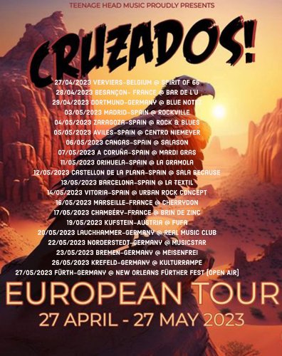 03/05/2023 Madrid – Sala Rockville 04/05/2023 Zaragoza – Blues Rock Café 05/05/2023 Avilés – Centro Niemeyer 06/05/2023 Cangas – Salasón 07/05/2023 A Coruña – Sala Mardi Gras 11/05/2023 Orihuela – La Gramola 12/05/2023 Castellón de la Plana – Because pop ‘n’ roll 13/05/2023 Barcelona – La Textil Collective 14/05/2023 Vitoria – URBAN ROCK Concept