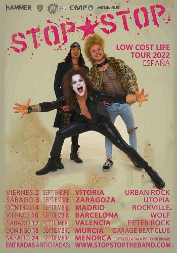 Los glammies Stop Stop, formación nacida en Barcelona y afincada en el Reino Unido, presenta las fechas promocionales de la gira de presentación en directo de su nuevo disco «Lowcost Life«.