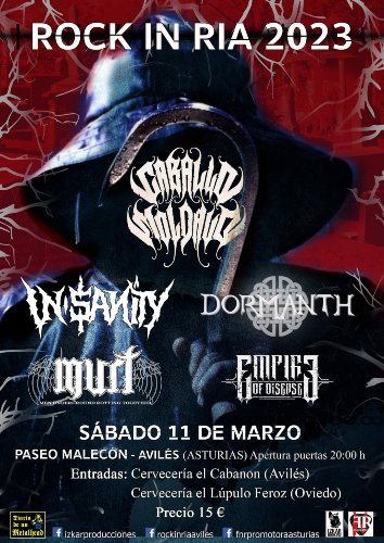 Tras el obligado parón pandémico regresa uno de los festivales más veteranos de Asturias, el avilesino Rock In Ria. Un entrega que volverá a tomar posesión de la Sala Malecón y que tendrá como protagonistas a los combos melodeath vizkaínos Dormanth y Empire Of Disease que estarán acompañados por las formaciones astures Caballo Moldavo, In-Sanity y Murt.