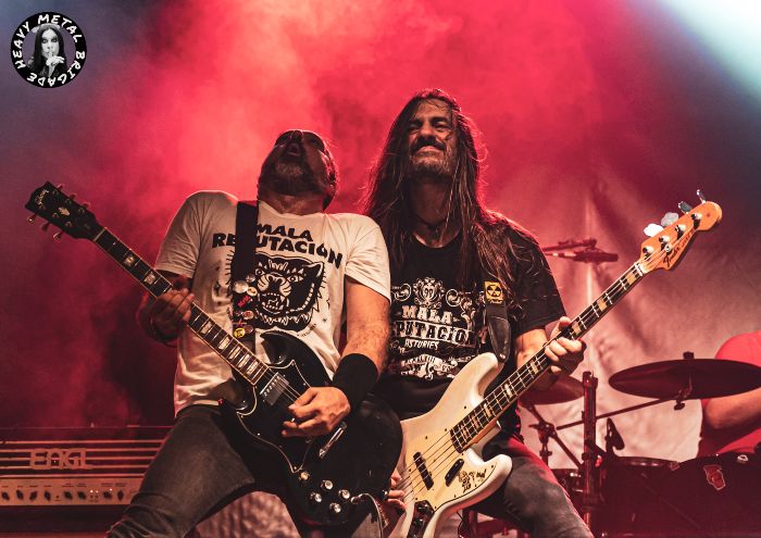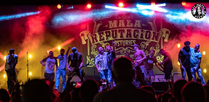 Veinticinco años, parece mentira, y uno recuerda los primeros pasos de la ahora ya legendaria banda asturiana en aquellos primerizos Derrame Rock sitos en la cuenca del Nalón. Mucho ha llovido desde entonces y aquí siguen dando guerra Daviz Rodríguez y Juan Santamaría en guitarra y voces, Kiko Martínez en batería y coros y Michi Candás en bajo y coros. Mala Reputación salen a escena cuando pasan pocos minutos de las once y Cangas de Onís vela armas para una descarga que se prevé histórica.