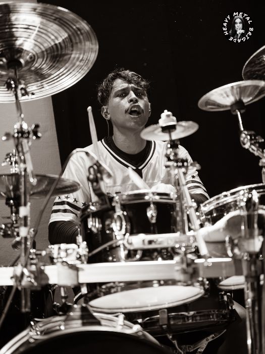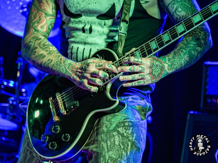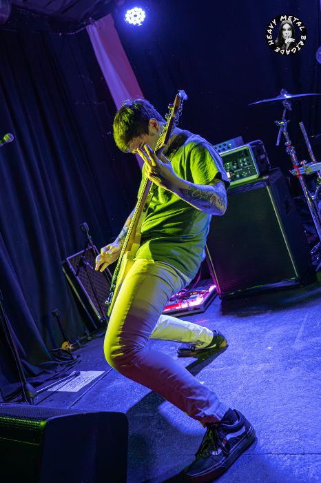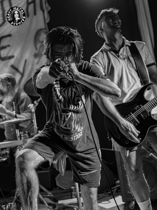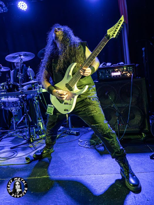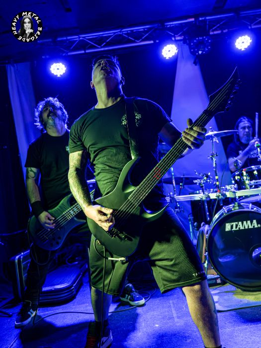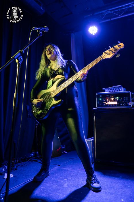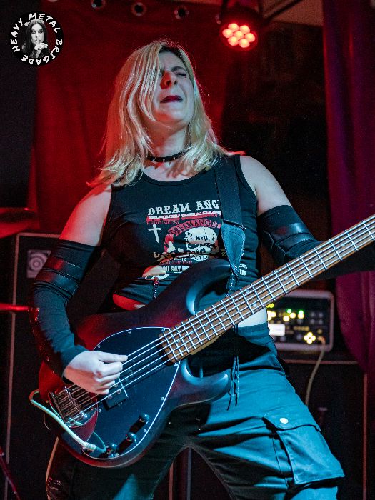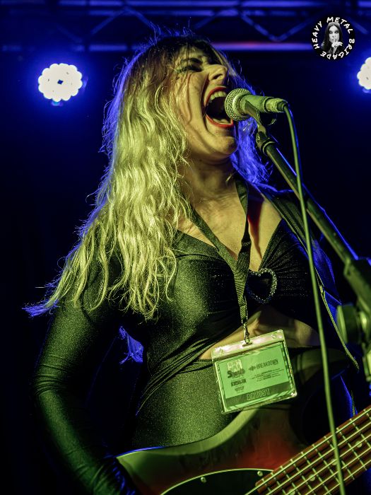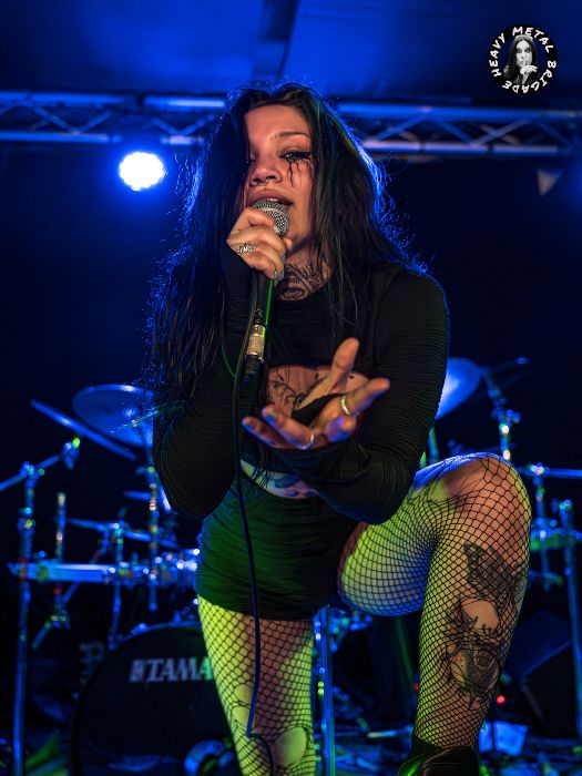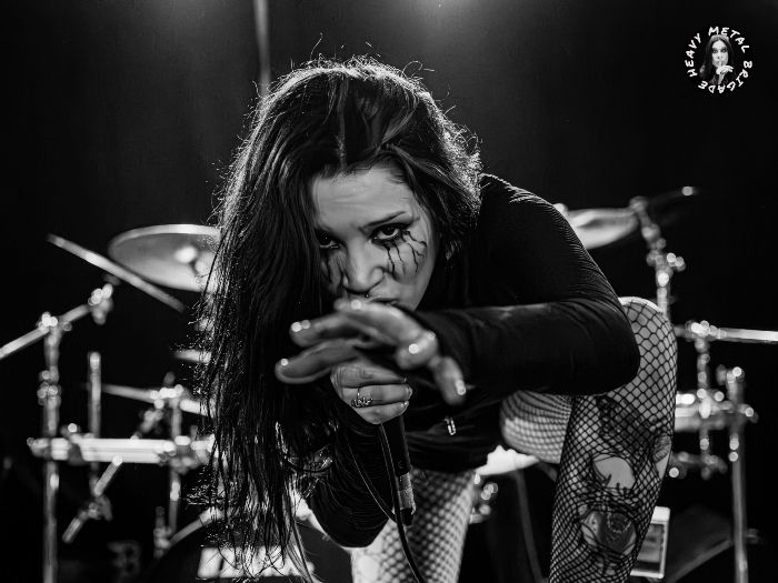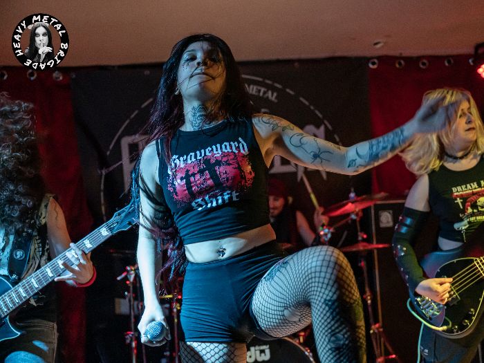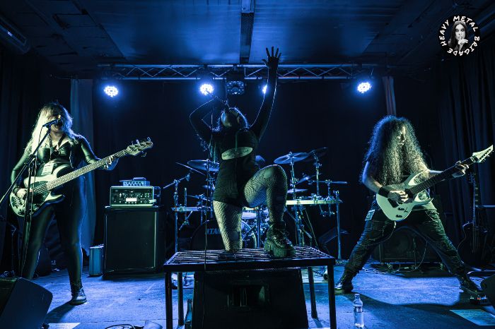 Parapetados en las técnicas líneas de batería del siempre risueño Vic, iniciaron entonces un recorrido por su primer álbum, aquél “Chaosvolution” de 2017, extrayendo de él “Burned To Ashes”, no sin que antes Gin hablase brevemente de los orígenes de la banda. Y si bien en los primeros compases del set, la guitarra de Mike ofrecía un sonido casi indescifrable, lo cierto es que tras pequeños ajustes todo vino a sonar en la medida que el público demandaba. Gin no paró de moverse mientras recorría sus siempre exigentes líneas de voz, haciendo buen uso del ineludible podio y mejorando con respecto a la versión que vimos de ella en aquél Fuck Mateo ’23 junto a Soldier y Beast Inside.