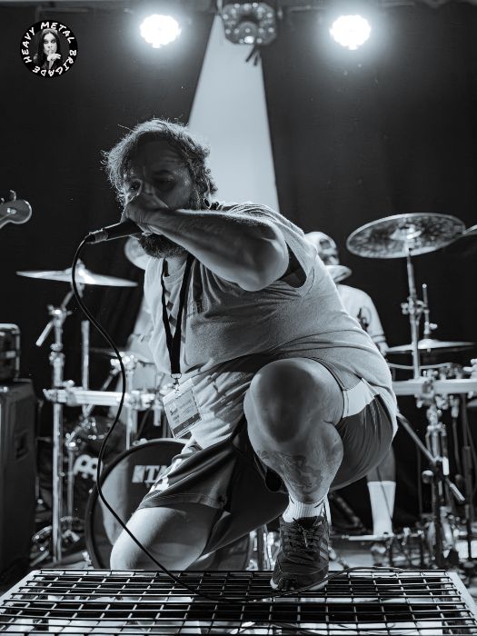 De primeras ya llama la atención cómo van vestidos cuando vuelven al escenario tras la prueba de sonido. El bajo con pelusilla de Guilhermino Martins. El recogedor encintado al micrófono de Carlos Guerra. Todo casa con esa visión abierta y desvergonzadamente lúdica del grind en particular y del metal extremo en general. Algo que llega hasta sus líricas, esa inicial “Rest In Piss”, pero que no logra esconder que, en el fondo, son una banda tan sólida como cualquier otra. Comprometida incluso. Porque Guerra no tarda ni cinco segundos en bajar al público e inaugurar el primero de los muchos circle pits que desataron. Apenas destellos de la que se nos venía encima.
