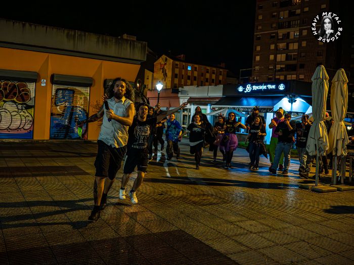 La fiesta montada abajo del escenario no distrae de las tremendas líneas de batería que está dejando Axell Valladares. Velocidad y grooves endemoniados casando a la perfección. Hubo un wall of death en la medida en que lo permite una sala como la Lata de Zinc y, por lo general, su propuesta pareció caer de pie en la tarde noche ovetense. Tras los agradecimientos de Víctor Iglesias, la banda desató su cara más melódica a través de “Monedas Sin Cruz”. A pinceladas, fueron dando muestras de ese amplio rango de influencias y sonidos que manejan. Xexu Jerez dejó buenas melodías con su Gibson aquí. Tras el pequeño escarceo con esa cierta calma, llegó el turno de apretar el acelerador y entregar una violentísima “El Camino Del Oriente”. Intensos y descosidos ahora, Iglesias contaría aquí con un buen apoyo en coros del bajista Zankare para un epílogo que de nuevo regresa a contornos más amables.