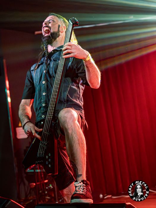 “Rock Duro Del Siglo XXI” suena a pura auto reivindicación, Eladio dejándose la piel por agradar tras el micro, y una banda que fue pergeñando un set muy old school. Entre medios tiempos elegantes, ingobernables, supieron ir sumando adeptos a la causa. Elzaurdia se mostraba siempre risueño. Correteaba por encima de las tablas o soleaba concentrado sobre los podios que coronaban el escenario. Parecía estar pasándoselo en grande. Para cuando suena “2030”, de aquél Ep de 2015 “El Baile De Los Necios”, lo cierto es que parecen más que cómodos enfrascados en ese metal de cierto regusto Maiden. Y aunque a mí me agradaron más cuando jugaron a extraer su lado más técnico, lo cierto es que la gente se terminó de enganchar gracias a “La Momia”. Aquí la base rítmica de los murcianos tomaría un cierto protagonismo. Todo para que Eladio y Antonio se fueran a camerinos y regresaran con esas (imposibles) camisas y máscaras del videoclip.
