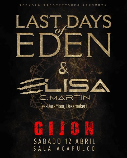 El 16 de mayo repiten fórmula. Elisa C.Martin y Last Days of Eden vuelven a unir fuerzas en Vigo. Más que recomendable. Saludos a los compañeros de Heavy Metal Brigade por permitirme juntar estas letras. Aprovecho estas líneas para mandar un abrazo muy fuerte a Julia y Novales.