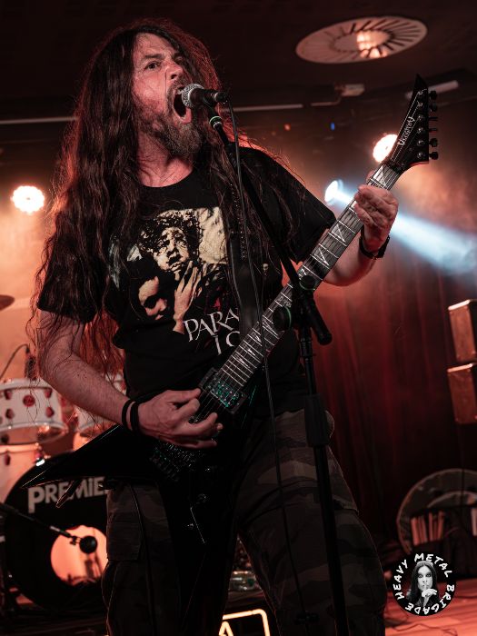 Presentado temas de su (hasta la fecha) último álbum, aquél “R3cod3d” de 2022 (reseña), vimos muy cómodo e incluso risueño a José Herrera, el seguro y eficaz frontman del eventual quinteto. La banda aprovecho también para mirar al pasado y recuperar una “Distorted Reality” cuya propia pesadez fue el rasgo que mejor atestiguó el haber sido compuesta allá por los convulsos años noventa. Herrera tendría tiempo de explicar la presencia en escena de Jesús. También de presentar una “Satanás” en la cual el publico presente respondió como se esperaba.