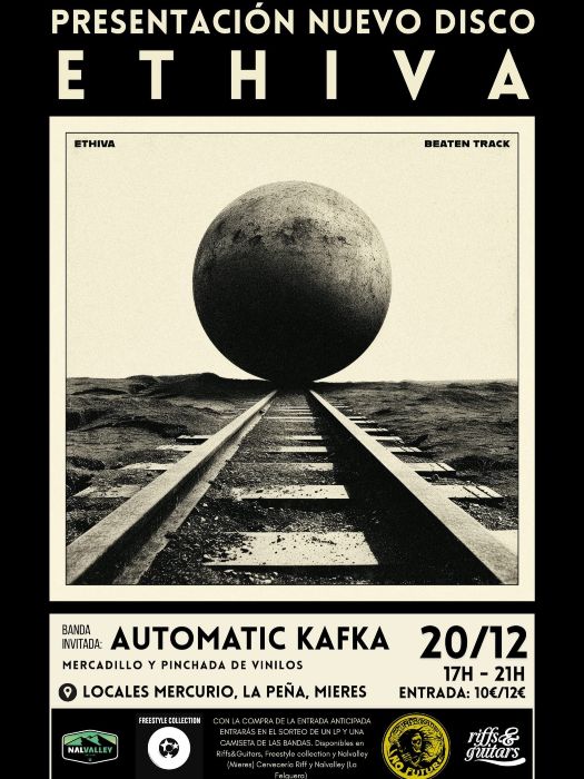 El cuarteto progresivo Ethiva presentará el sábado 20 de diciembre en los Locales Mercurio de Mieres su nueva obra de estudio «Beaten Track«. Una velada que contará con los infatigables Automatic Kafka como compañeros de escenario. Ocho años después la publicación de su anterior trabajo «Sublime Island» Camil Cinnamon en voces, Javi Lorenzo a la guitarra, Ramón Fernández en baterías e Iván Muñoz al bajo han confeccionado 6 nuevas canciones en Ovni Estudio y Tutu Estudio y que veía la luz a través del sello alemán Clostridium Records. Por su parte los Kafka repiten paso por Mieres para presentar su último lanzamiento discográfico «Immortal«.