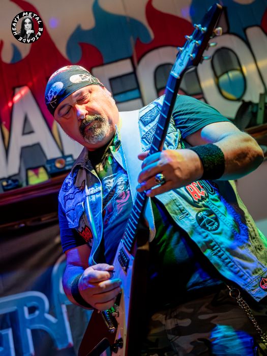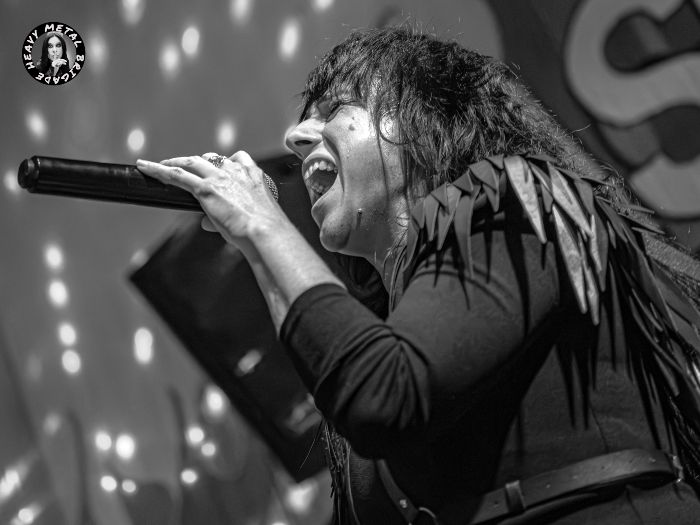 Con “Leather Gunner” dimos un salto hasta aquél “Back In The Streets” de 2014 para uno de los pocos arranques de nostalgia que se permitieron. Lo cierto es que sí dio la sensación de que los temas viejos sonaban más enteros. Algo que parece lógico y que el tiempo se encargará de subsanar. Es el ciclo natural. Leather Rose abandonaría su (ya icónica) cazadora de cuero blanca para “Electrify”, canción de Leather Dirty Duke para su hija. Una de mis favoritas del nuevo álbum y creo que de las que en mejor forma llegó al show del sábado. No faltaron, no podían hacerlo, las ya clásicas introducciones de Leather Sex, siempre con ese gracejo tan particular. Esta vez fue para presentar “Red Flag”, dedicada a Jorge Martínez. Su sonido, que si bien nunca fue malo, sí es verdad que mejoró en cuanto a equilibrio a estas alturas del set. El público sumó palmas y entre uno y otro creo que estábamos viendo una buena versión del quinteto.
