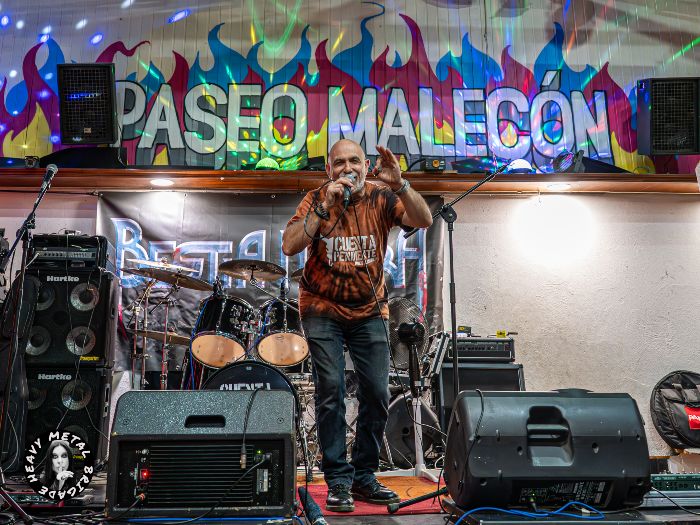 Tras los obligados agradecimientos a la buena gente del Santa Cecilia, turno para que desbordase la nostalgia. Con arranque en falso, sí, pero “Fading Star” puede que dejara la mejor versión de Leather Rose tras el micrófono. Leather Sex recordó aquellos años en que iban a hacer surf a “la playa de Salinas” y cómo aquellos tiempos habían inspirado “Aussie Girl”. De este tramo final me gustó otro de los cortes nuevos en que se atreven a caminar por entornos algo diferentes. “Acid Riders” puede que pierda ciertos detalles en su traslación al vivo. Sea como fuere me gustó la dimensión que le otorgó al setlist. Leather Latin Lover huiría al excusado, si es que ya tenemos una edad, y la banda afrontó el renacimiento final. “Rebirth” es una de esas que siempre parece caer de pie en sus directos, al igual que el canto “Leather Boys, qué hijo puta sois” que se ha convertido ya en clásico en sus directos, a la altura de aquél “Amon Ra, grandes cojones” que, a buen seguro, más de un lector recordará. Invasión de escenario en “Born In The 70’s” y el cierre “Rock And Roll Blowjob” con media banda entre el público. Un gran final.
