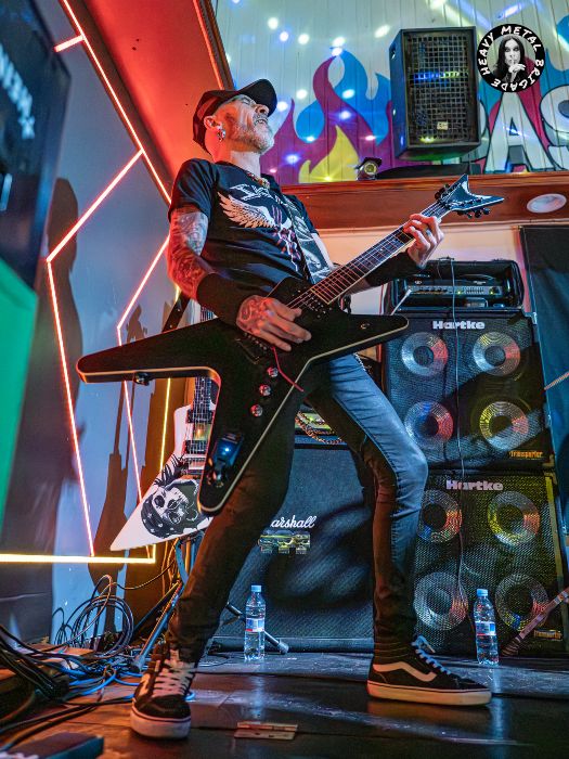 Lo que me agradó fue el modo en que, sin salirse de las lindes del hard más académico, construyeron un set diverso y atractivo. Estuvimos “En La Guerra” y nos gustó el modo en que Lazy Lane jugó con la gente al final. “Qué jodidas son las tardes ¿Eh Avilés?” exclamaría a término. “Sicarios” destapó la cara más rotunda a la que antes aludí. También un gran solo por parte de Alex Simón. La banda estaba dando un nivel más que óptimo y la gente fue despertando de su aparente apatía vespertina. Lazy Lane bromearía al presentar a Israel como “el nombre peor visto del rock and roll”. Pobre chaval. “Carretera” y manta, que no había un solo segundo que perder. Con “Polvo” vuelven a derrochar feeling, rematando además con una de las mejores secciones solista de toda la jornada.