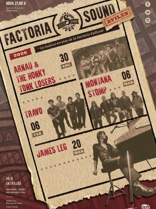 Los conciertos en la Factoría Cultural avilesina arrancarán el viernes 30 de enero con Arnau & The Honky Tonk Losers, formación bilbaína con una propuesta sonora mezcla de honky tonk, country-rock y folk, que bebe directamente de la tradición norteamericana, consolidada en su primer LP «Second Chances» editado en el mes de abril vía Guns Of Brixton Records.