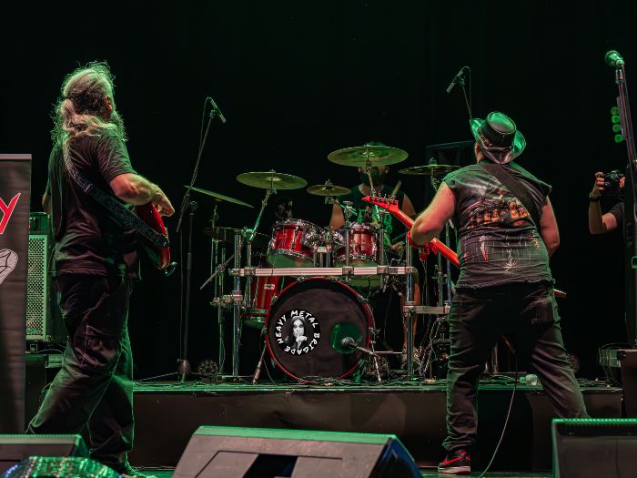 Y ante un sonido tan redondo como el que estaban teniendo, quedó claro la pura organicidad de su propuesta. Más allá de los mil y un efectos que Didi emplea a lo largo del set, tanto él como la base rítmica de Lagarto y Mochy, su metal resulta tan laberíntico como real. “Moretty”, precedida de una pequeña dedicatoria de Didi, puede ser el perfecto ejemplo de esto que comento. Como siempre, vimos muy compenetrada a la banda. Su propuesta así lo exige. Pero esta es una de esas formaciones que realmente da la impresión de disfrutar con lo que hace. Brilló Didi aquí en su faceta como vocalista, sacando provecho de sus distintos registros. El propio vocalista pidió un aplauso para “el Rey Lagarto” antes de “Shaman”, recuperada de aquél Ep debut que en septiembre de este mismo año cumple ya diez años. Ahí el trío bordea su cara más oscura, amplificando aún más si cabe su amplia paleta sonora.