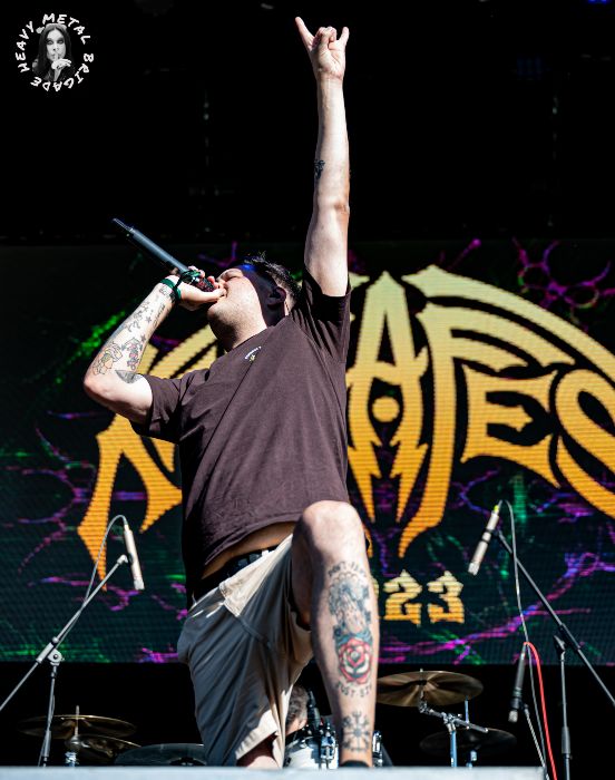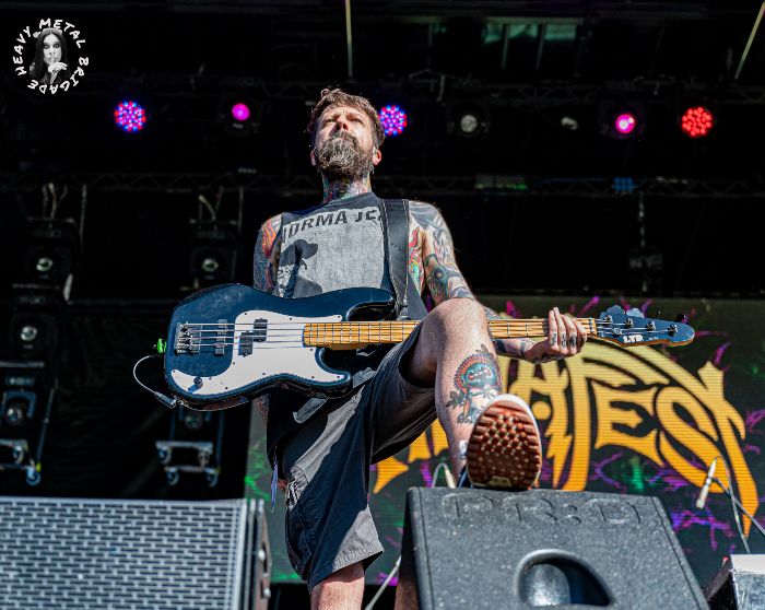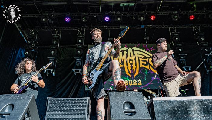 “Sanctify My Ache” apostará en primer término por la contundencia, entendida al modo Teksuo, y contrapondrá después estribillos limpios, casi cristalinos, con Diego dejando voces realmente altas con su habitual buen tino para las melodías. Hay algo en sus partes más aseadas que me recuerda a Vessel de Sleep Token. Algunos de los riffs en que se apoyan esa voces incluso. Es un corte que va virando hacia la versión más cruda de la banda. Siempre sin abusar del recurso, comedidos aún en su brutalidad, alcanzando puede que el cliché pero nunca la caricatura. Servidor tal vez le habría metido tijera a todo cuanto acontece tras el (estupendo) solo de David, pero con eso y con todo un corte que disfruto de muy buena gana.