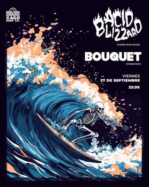 Continúa la presentación en vivo de su nuevo material para los combos stoner Acid Blizzard y los gijoneses Bouquet,que unen fuerzas el próximo viernes 27 de septiembre en las instalaciones del Xagó Surf Co.