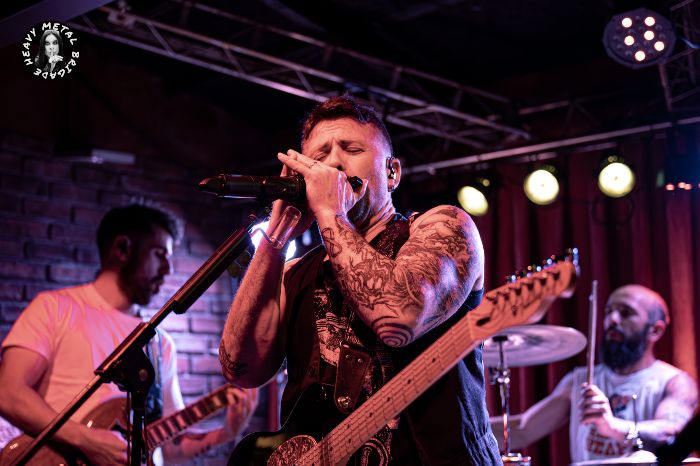Desde que, bañados en luz verde, arrancan con “Vuelve” de su nuevo álbum, pronto queda claro que van a disfrutar de un sonido tanto o mejor que las muchas bandas que fueron desfilando a lo largo de la jornada. José Santos, que llevaba una pequeña tablet para (intuyo) las letras, mostró una voz potente ya desde las primeras estrofas. Es el suyo un registro lleno de personalidad, también de fuerza, que a ratos me recuerda al bueno de Víctor García (WarCry). También a Sergio Márquez de los desaparecidos power metaleros catalanes Dragonslayer. Juan Muiños y Ger García dejaron ya buenos solos doblados en este primer corte. Nos las prometíamos muy felices.