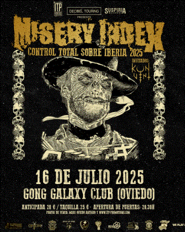 Vía ITP Promotions el combo deathgrind Misery Index recalará el próximo miércoles 16 de julio en el ovetense Gong Galaxy Club. Llegaran acompañados por las danesas Konvent inmersos en una extensa gira estatal con paradas en Madrid, Badalona, Vitoria-Gasteiz, Valladolid y Ponteareas.