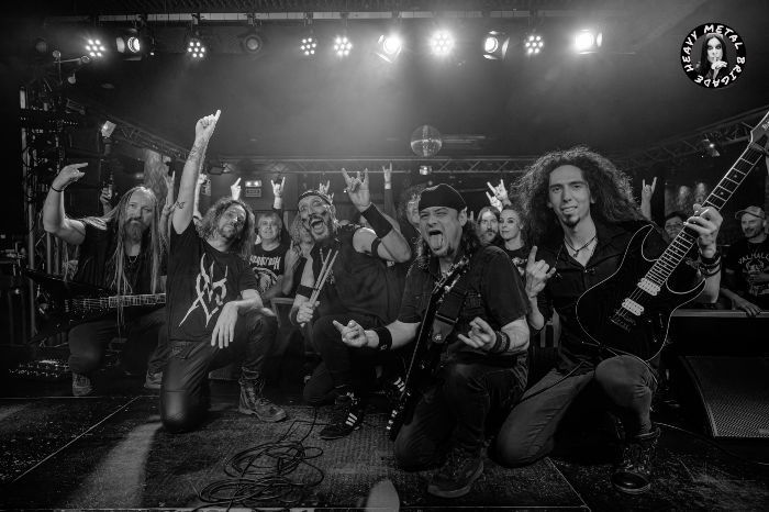 A las 22:10 horas empieza a sonar la intro, de título homónimo al nombre de la banda, que sirve de entrada a escena se los turolenses SiixS, banda que, con unos tres años de trayectoria (en los que han compartido escenario con grupos de la talla de Hamlet o Nervosa) está ganando seguidores por todo el país. El quinteto está formado por Oriol Pascual “Txury” (voz), Antonio Fuster guitarra, Raúl Piquer, guitarra y coros, Jorge Alloza, bajo, y en esta ocasión Pau Bonet a la batería. Ya cuentan con dos discos: “Vaciio”, del 2022, y “Hacia Ti”, financiado mediante un exitoso crowdfunding, del 2023.