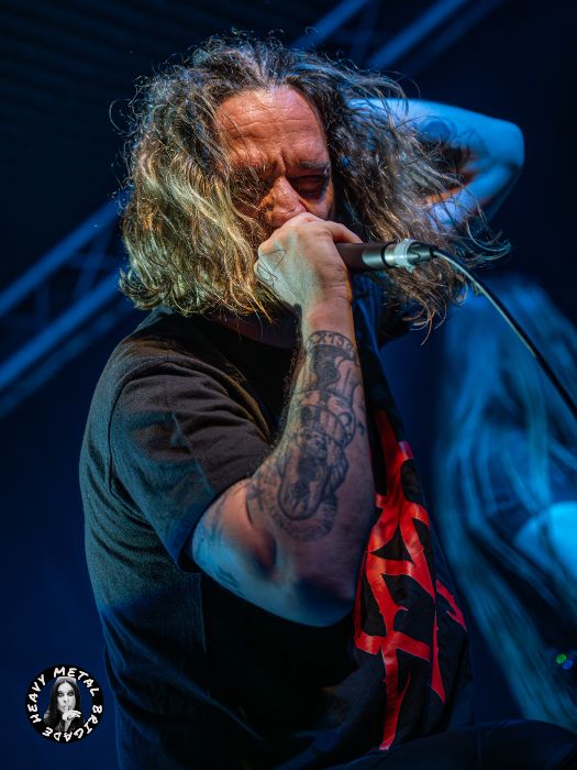 Agradecimientos al público, preguntando si lo estamos pasando bien, y a la peña de SIIXS antes de encarar “Hands Of The Emperor”, perteneciente a su último plástico, de inicio tranquilo y machacón, con cierto regusto doom marca de la casa, para regresar a su «Screams Of The Voiceless» con “Among Humans And Their Balance” que coge velocidad a medida que evoluciona con un Ales de voz más melódica en el estribillo para intensificarse de nuevo en su parte final.