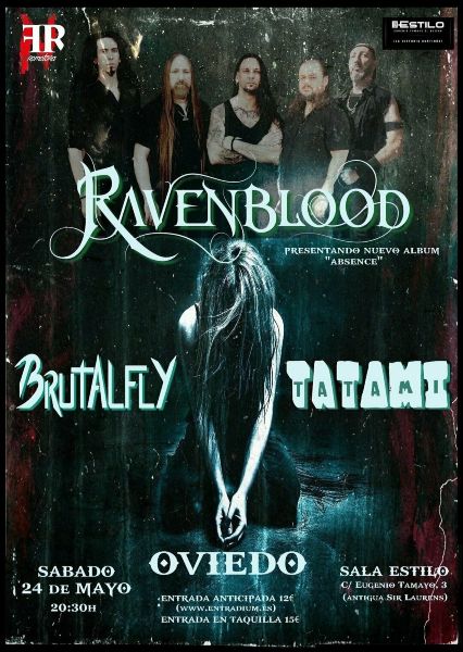 Nueva parada en los escenarios astures para el combo death metal catalán Ravenblood. De nuevo con la ovetense Sala Estilo como epicentro presentarán su nueva obra de estudio «Absence» (reseña) acompañados por los thrashers locales Brutalfly y el trio rockero Tatami.