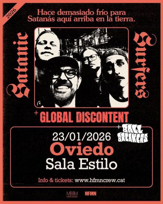 A través de HFMN el combo sueco Satanic Surfers, pilares del skate punk sueco recalarán en la ovetense Sala Estilo el próximo viernes 23 de enero. La cita contará con la participación del combo punk catalán Global Discontent y la formación stoner local Ball Breakers como bandas invitadas.