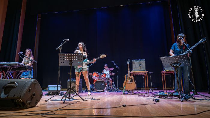 El colofón de la velada estaba reservado para las tutoras. Bajo el nombre de Las Tichers, Sil Fernández al bajo, la teclista Cristina Montull y Mar Álvarez a la guitarra contaron con la inestimable ayuda de Eva D. Toca a la batería para interpretar un repertorio exclusivamente femenino. Temas de Carole King, Suzanne Vega, la malograda Sinead O’Connor, Adele o la siempre reivindicable Tracy Champman en los que las «tichers» se turnaban a la voz solista. Más clase que una universidad. Impagable colofón de fiesta el que nos ofrecieron a través de un «Walk Like An Egyptian» de TheBangles que puso a bailar a la audiencia. Si las sonrisas son moneda de pago, tod@s nos fuimos millonarios del CMI Pumarín Gijón Sur.