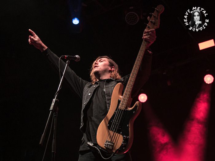 Un tramo final que recorre, del tirón, tres cortes que integrarán su futuro álbum de estudio “Waking The Fire”, siendo “This Distance Between Us” el primero de ellos, del que me agrada especialmente la escritura de su prólogo. Ángel, que se había deshecho ya de la chaqueta (bonita camiseta de Karma To Burn, por cierto), de nuevo tuvo problemas con el micrófono. La noche, desde luego, no estaba saliendo nada redonda para ellos. Pero como dije antes, espoleados por los inconvenientes, ofrecen su mejor cara aquí. A ratos el sonido iba y venía, en una sensación que me recordó a la terrible conjunción entre festival veraniego al aire libre y viento racheado. Curioso pues estábamos en un recinto cerrado a mediados de diciembre. El caso es que, sea como fuere, “Shadow Of Me” ofrece unas preciosas guitarras dobladas en el prólogo. Es un corte, oscilante entre la balada y el medio tiempo, que representa un registro en el que parecen particularmente cómodos. Cincuenta minutos exactos de una banda, nuevo disco en ciernes, que luchó de manera denodada contra los distintos problemas.