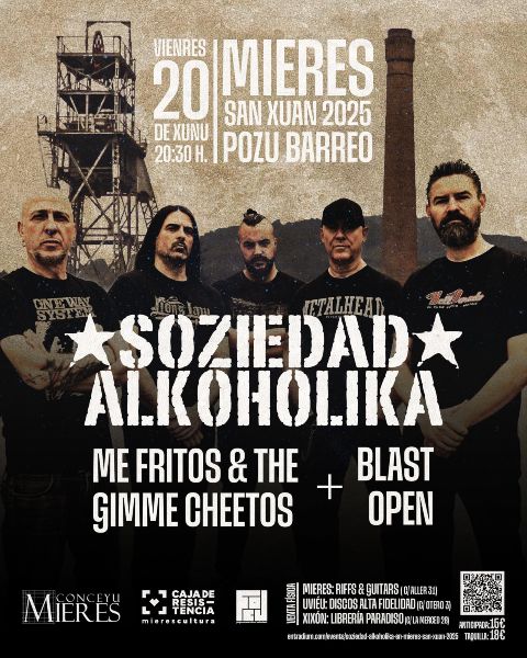 Horarios oficiales: Apertura De Puertas 20:30 horas Me Fritos And The Gimme Cheetos 21:00 horas Blast Open 22:00 horas Soziedad Alkoholika 23:15 horas