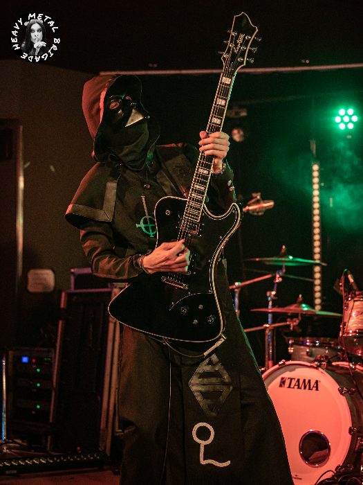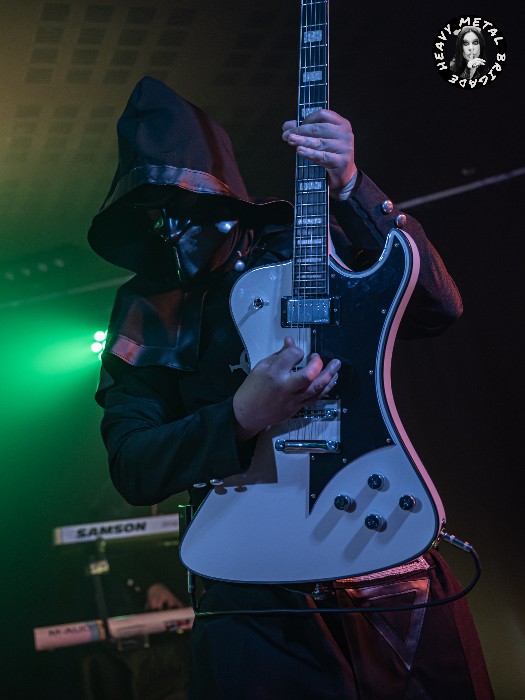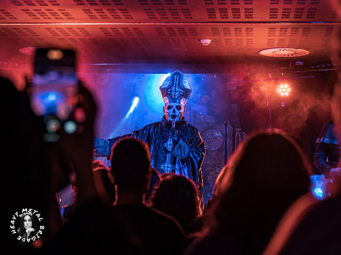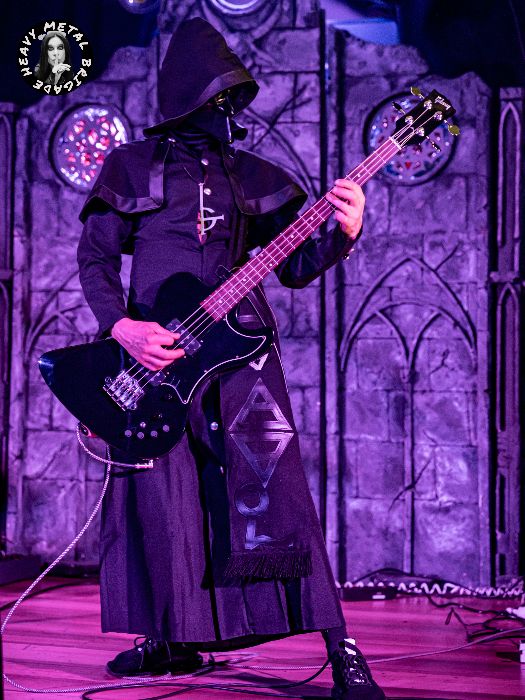 Me sorprende muy gratamente el parecido físico y lo bien caracterizado que está el cantante, con idéntica vestimenta a la del conocido Papa Emeritus II, así como los cuatro músicos: dos guitarras, un bajo y un batería. Todos ellos con máscaras y ataviados con túnicas iguales a las de los originales The Nameless Ghouls, portando su símbolo alquímico correspondiente en el traje.
