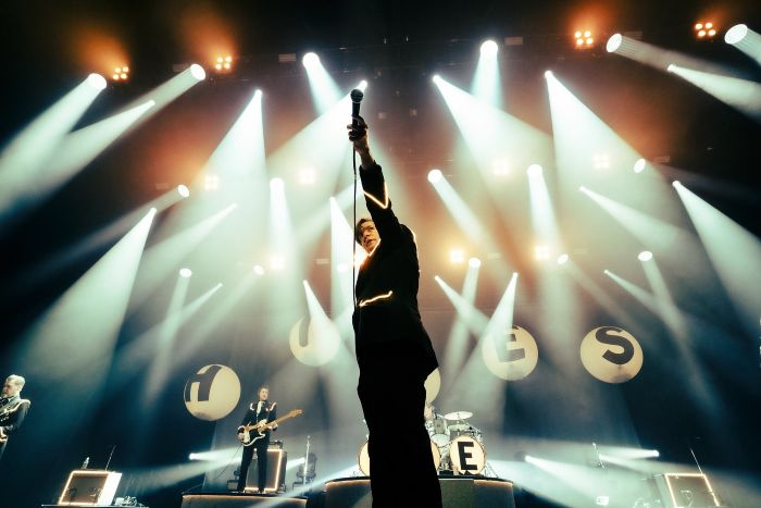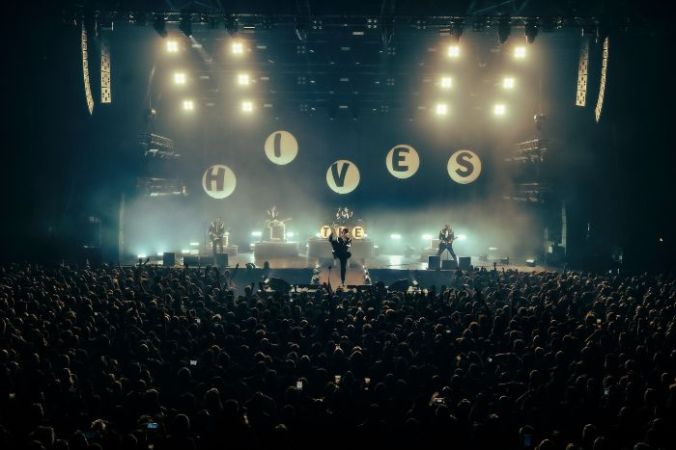 No necesitaron grandes alardes en lo ornamental. Apenas cinco globos suspendidos en el escenario formando el nombre de la banda y varias tarimas por las que Pelle Almqvist y los suyos saltaron y posaron para disfrute de la audiencia y los fotógrafos más avezados. Estéticamente más de lo mismo, sus habituales y luminosos trajes de faena, guitarras que parecen llevar una eternidad en sus manos a la vista de su deterioro para volver a colmar todas las expectativas a las 4.000 almas congregadas en el Movistar Arena.