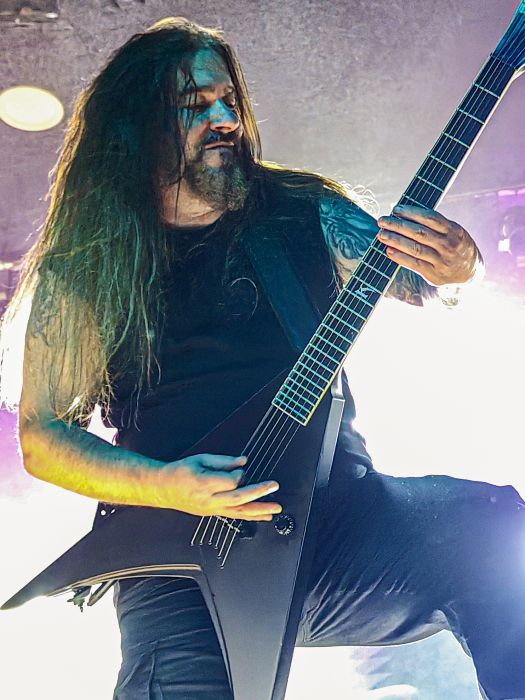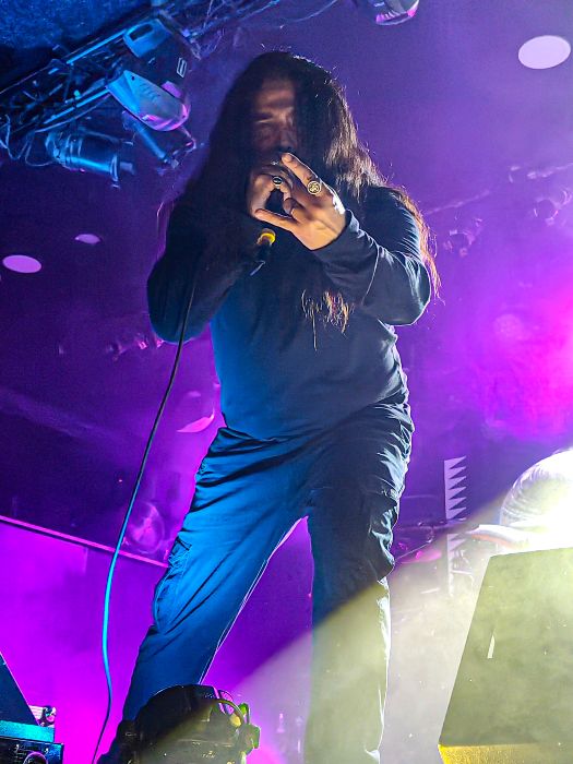 A estas alturas ya todos estábamos disfrutando de su impresionante directo, con ese death cargado de melodía y toques más modernos hacia el que ha derivado la banda en sus más de 30 años de carrera musical, de hecho, su setlist se basó en temas extraídos de sus trabajos posteriores al 2002. El sonido, impecable. Iacono pide movimiento, recordando el caos vivido en Madrid la noche anterior, y la gente responde en “Prevail” y “Soul Destroyer”. Brazos levantados y cuernos al aire antes del single publicado en 2025, ”The Rabbit Hole”. Los canadienses se toman un respiro mientras su batería James Payne permanece sobre el escenario luciéndose con un solo. Minutos después vuelven con “The Resurrected”, “In Shadows & Dust” y “As I Slither”.