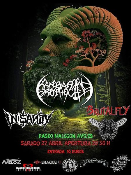 Primero de los eventos autogestionados que tendrán lugar en las próximas semanas en la avilesina Sala Malecón. Con el metal y la camaradería entre bandas por bandera el cartel del pasado sábado 27 de abril unía de nuevo a Barbarian Prophecies y Brutalfly tras su paso por Sarria (Lugo) allá por el mes de diciembre, más los locales In-Sanity en esta nueva andadura tras décadas en barbecho.