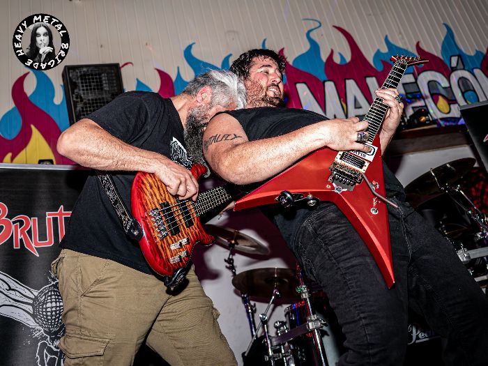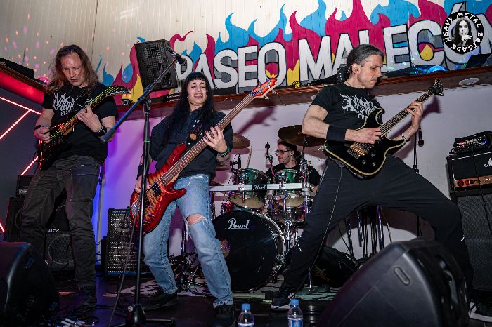 Punto focal del combo lucense es sin duda la menuda figura de su vocalista y bajo Alicia, contraposición a su fuerza y agresividad en las tablas, navegando como pez en el agua cuando la banda recorre en su set efluvios del black melódico sueco y pasajes potentes y agresivos rozando el death metal más extremo. Perfectamente respaldada por el trabajo a las guitarras del mentado anteriormente ÓscarBesteiro y Arnt Bünz, al igual que Brutalfly contaron con la colaboración en un tema de Txeffy, aportando su garganta de nuevo desde la mesa de sonido.