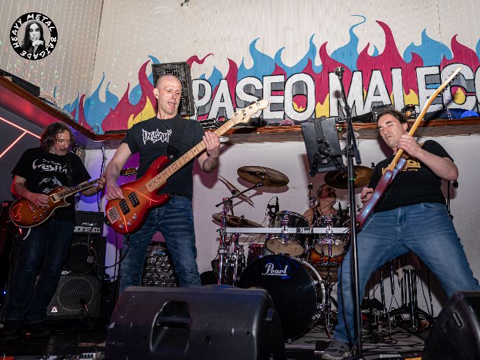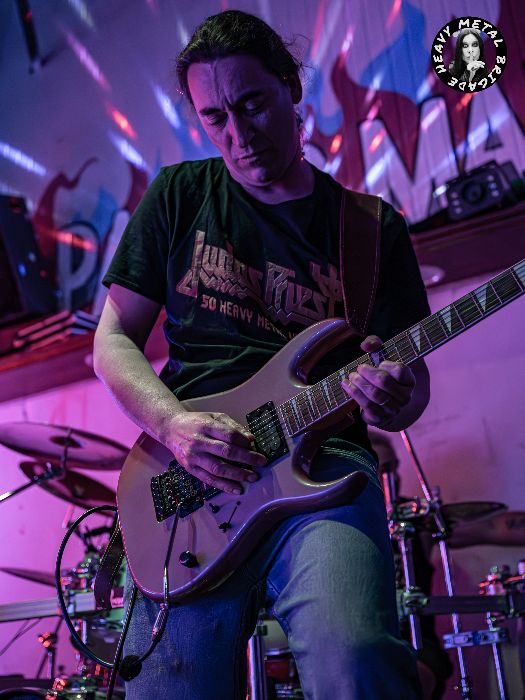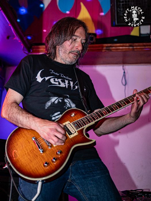Arrancaron a bocajarro con «Before«, Diego agradeció a los asistentes la asistencia. Después de tantos años, Un placer de estar allí, y pasar a presentar una acelerada «Suffocated». La voz se me antojó tapada por el resto de instrumentos, quizá por estar en la primera fila. Me agradó especialmente «Searching And Victimized» con el cambio de tornas melódico, la respiración suave de guitarras in crescendo en velocidad, para dar paso de nuevo a la voz en un tramo final gemelo del principio. «Gloomy» traía aires lejanos a unos Drunken Buddha pero abrazando más el heavy metal. También nos regalaron con un par de covers, «Killers» de Iron Maiden y «She Wolf» de Megadeth para cerrar de nuevo con material de cosecha propia como «Icaro’s New Flight».