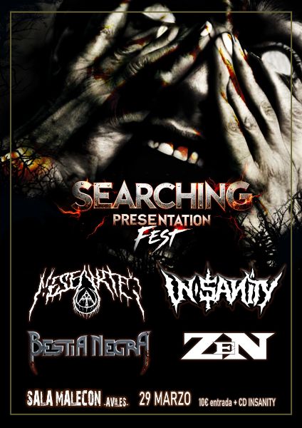Largo tiempo ha transcurrido desde que los thrashers asturianos In-Sanity debutaran en esto con la demo “Searching” allá por 1994. Compuesta por cuatro temas que la banda recupera y actualiza ahora con una formación en la que encontramos a Salvador “El Poyo” García (batería), Chus (bajo), Diego (guitarra y voz) y Víctor Casado (guitarra). Este álbum debut que hoy nos traen, y que lleva el mismo título que aquella demo de mediados de los noventa, ha sido grabado por la propia banda en su estudio, Diego a los mandos, para ser posteriormente mezclado y masterizado por Dani Sevillano (Unexpectance, Azure, Malverde…). El artwork corresponde a Tony Nekrosia y las fotos vienen firmadas por Eva Bustamante.