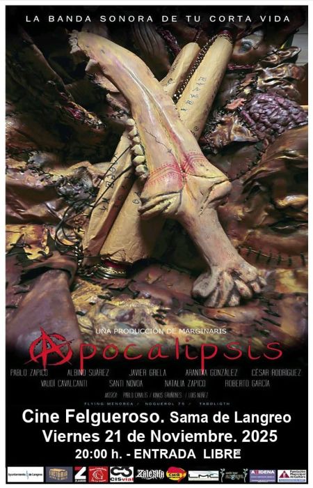 Fruto de la asociación entre la productora audiovisual Marginaris, Kinkis Gruñones y ZL Audio nace el cortometraje «Apocalipsis«. Con apenas media hora de duración lo que originalmente era una nueva canción y videoclip de los langreanos Kinkis Gruñones se estrenará a partir de las 20 horas del viernes 21 de noviembre en el Cine Felgueroso de Sama de Langreo con acceso libre hasta completar aforo.