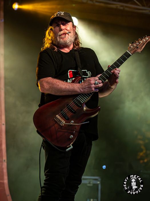 Teníamos ganas de ver qué tal funcionaba la nueva formación de Monasthyr, que con la base rítmica que ahora forman Aurelio González (bajo) y Maxi Valdez (batería), tomaban por las armas el pequeño “Senderos Del Carbón Stage” prestos a repartir un poco de heavy metal. Me sorprendió que optaran por “Seis Infiernos” como arranque en lugar de la más habitual “Cómplice De Traición”. Como suele suceder en estas citas, como de hecho había ocurrido con Barbarian Prophecies, el sonido en primeras filas no era ni mucho menos óptimo, con una batería que atropellaba al resto de elementos. En cualquier caso la banda se mostró tan disfrutona como siempre y Jorge no se quiso olvidar de su habitual dedicatoria a este medio a cuenta de “Checking For Death”.