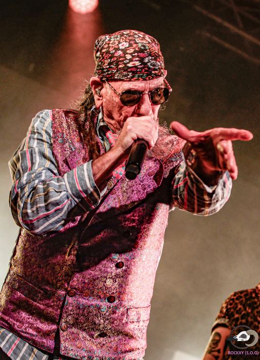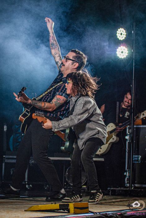 Son las 22:30 horas y la banda se retira a escanciar unos culines, como se podía entrever entre las cortinas del camerino. De regreso, suenan los primeros acordes de “Palabras Mágicas”, otro de los temas de su álbum más reciente. De fondo, se proyecta un fabuloso eclipse acorde al aspecto más melódico de esta canción, relajando un poco el ambiente. En “Jack Queen Jack” compartiendo voces de nuevo Brigi y Rafa, la guitarra de Brigi falla y se la cambian casi de forma imperceptible. Siguen con “A Ostia Limpia” para completar la antesala a la parte final del show.