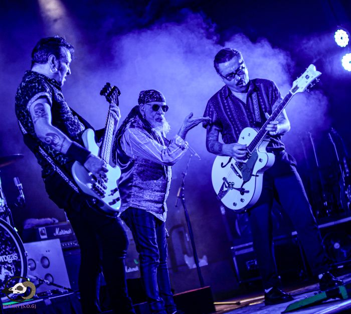 Vuelta a la velocidad con la poderosa intro de “El Pobre” y vuelve el movimiento entre los presentes, que lo están disfrutando de lo lindo, culminando en un clamor con “Imagínatelos Cagando”. Suma y sigue. “La Almohada Cervical”, breve descanso y “El Marqués De Txorrapelada”, seguida de “El Sonajero”, tema del álbum “Sakeo” (2007) donde fusionan son cubano con metal. En la proyección del fondo un simpático monito tocando unas maracas.