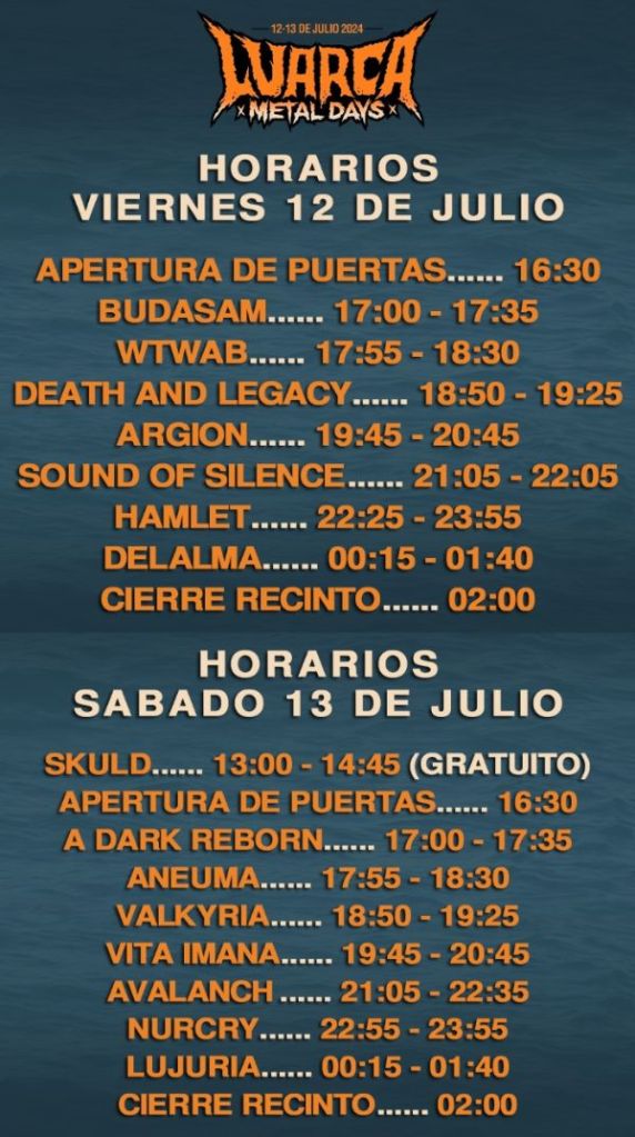 Unas fechas imperdibles, los días 11 y 12 de julio en las pistas exteriores del Polideportivo Pedro Llera Losada de Luarca, rodeados de un precioso entorno natural, a 10 minutos a pie de la playa con el aliciente además de acampada gratuita y acceso libre a los menores de 12 años. Últimos abonos a precio reducido 45€ disponibles a través del siguiente enlace: https://luarcametaldays.com/paginas/entradas.html