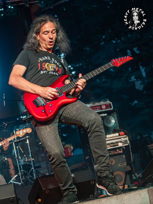 De ese estatus de culto que comento puede dar fe el inicio que proponen, no otro que “Libre Como Un Halcón”, cuyos versos “Corre por tu vida y no mires atrás. Recuerda que no hay otra oportunidad” sonaron más auto-reivindicativos que nunca. Gran solo de Bustamante aquí, al que se le vio entre concentrado y risueño durante no pocas fases del set. Y tal vez por aquello de que había sido la actuación inmediatamente anterior, lo cierto es que la traslación al directo de “Acabado” me sonó más Obús que nunca. No defraudó Juan Lozano al micro. Con ese timbre inconfundible, no cabe otra que amarlo u odiarlo, parecen no haber pasado veinte años, encandiló a los suyos. La coletilla “Brecha, veinte años y a veinte uñes” engrosa desde ya la mitología de la banda.