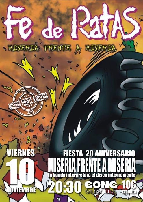 El viernes 10 de noviembre con el ovetense Gong Galaxy Club como testigo Fe De Ratas celebrará por todo lo alto el vigésimo aniversario del lanzamiento de uno de sus discos más emblemáticos «Miseria Frente A Miseria«.