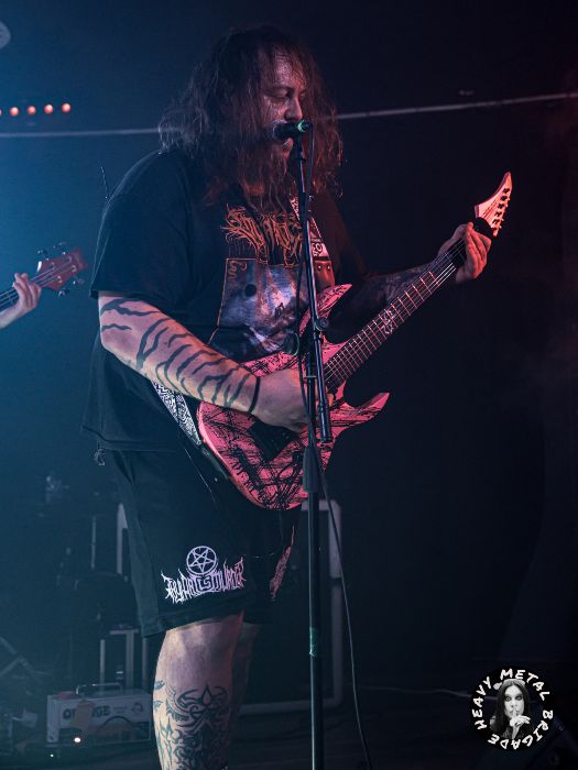 También que la banda sigue sabiendo cómo conjugar su cara más atmosférica con la más violenta, esa que se apoya en los blast beats de un Luis Barrientos nunca falto de determinación. En “Gnosis” y sin obviar los momentos más técnicos, sí que noté a la banda algo más árida y rocosa. “Hipersomnia”, en cambio, procura una entrada en falso con la que ironiza el propio vocalista: “os engañamos, somos Unexpectance”. Tuve ya aquí la impresión de que el set, al mismo tiempo que su propio vocalista, iba a dibujar una línea ascendente desde desde la frialdad inicial hasta el nivel que uno espera de una formación como esta. Es ahí donde otro corte nuevo, “Momiji”, entrega su cara más melancólica. Estupendos los guitarristas Miki Méndez y un Nacho Peña que dibujó aquí uno de los mejores solos de todo el set para uno de los temas nuevos que mejor conexión logró con el público.