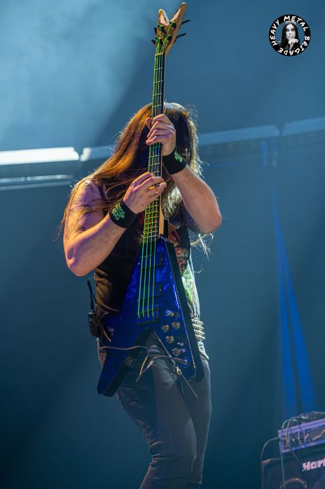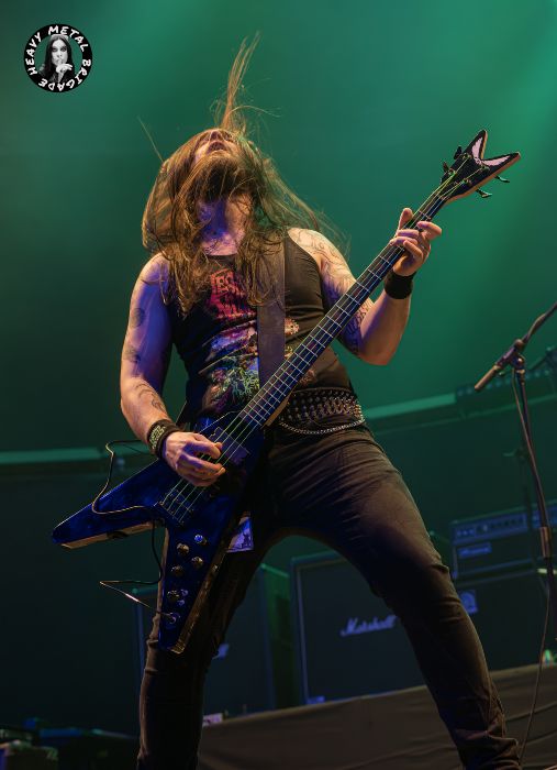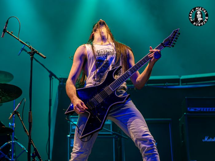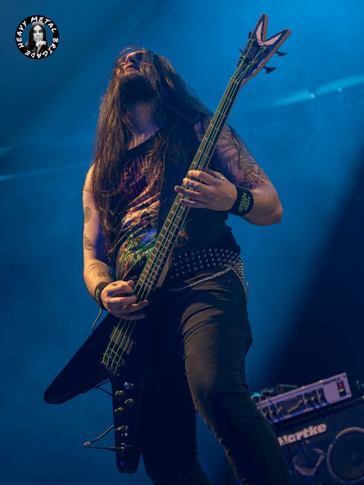 A estas alturas ya todos estábamos disfrutando de su impresionante directo, con ese death cargado de melodía y toques más modernos hacia el que ha derivado la banda en sus más de 30 años de carrera musical, de hecho, su setlist se basó en temas extraídos de sus trabajos posteriores al 2002. El sonido, impecable. Iacono pide movimiento, recordando el caos vivido en Madrid la noche anterior, y la gente responde en “Prevail” y “Soul Destroyer”. Brazos levantados y cuernos al aire antes del single publicado en 2025, ”The Rabbit Hole”. Los canadienses se toman un respiro mientras su batería James Payne permanece sobre el escenario luciéndose con un solo. Minutos después vuelven con “The Resurrected”, “In Shadows & Dust” y “As I Slither”.