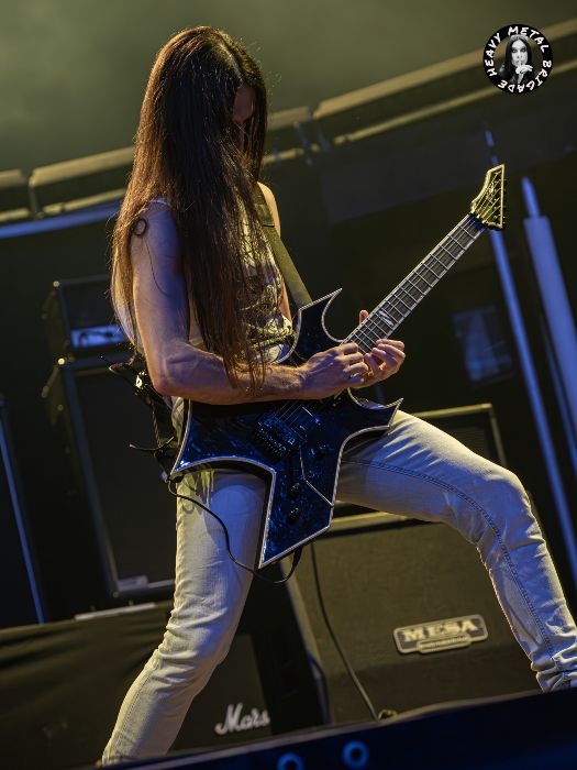 Aún no dieron las 8 de la noche cuando salieron a escena la banda inglesa Tailgunner. Con un estilo hard rock y una estética ochentera esta banda joven supo meterse al público en el bolsillo ya con la primera canción. Iniciaron el concierto con “Midnigth Blitz” adelanto de su siguiente álbum que saldrá el 6 de febrero. La guitarrista Rhea Thompson no pudo estar en la gira por problemas de salud pero la sevillana Jara Solís la sustituyó y la conexión entre ella y el resto de la banda era perfecta, como una hermandad. La banda tocó de sus dos álbumes “Crashdive” de 2022 y “Guns For Hire” publicado el año siguiente. Se despidieron a las 8:30 horas, tras 40 minutos de un concierto que disfrutó tanto la banda como el público. Fue el relámpago previo al trueno.