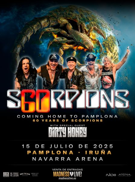El martes 15 de julio Scorpions celebrarán sus 60 años sobre los escenarios en el Navarra Arena de Pamplona. Seis décadas de éxitos, repletas de clásicos grabados a fuego en el acervo popular de muchas generaciones y que repasarán en un concierto histórico.