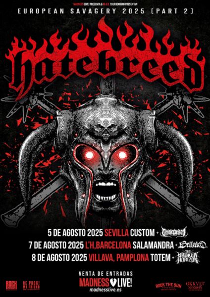 Nacidos en Connecticut allá por 1994 Hatebreed se ha convertido en banda de referencia dentro del metalcore gracias a su particular combinación de influencias del hardcore y el punk rock. En agosto regresan a nuestros escenarios en 3 fechas exclusivas, Sevilla, Barcelona y Pamplona dentro de la segunda parte de su gira «European Savagery 2025«.